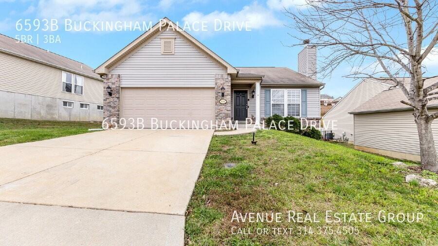 Welcome to 6593 Buckingham Palace Drive, a beautifully updated 5-bedroom, 3-bathroom ranch in the heart of Imperial, MO. With 2,696 square feet of living space, this home blends modern amenities with classic charm. Step inside to a spacious family room with vaulted ceilings and fresh, neutral paint, creating a warm and inviting atmosphere. The open floor plan flows seamlessly into the kitchen, featuring stainless steel appliances, ample cabinetry, and a convenient center island—perfect for cooking and entertaining. The master suite offers a peaceful retreat with a walk-in closet and an en-suite bathroom complete with double vanities and a soaking tub. The finished lower level provides additional living space, including two bedrooms, a full bathroom, and a versatile recreation area. Outside, the expansive backyard is ideal for entertaining or relaxing, featuring a well-maintained lawn and a patio area. The home also includes an attached two-car garage for added convenience. Located in a friendly neighborhood with easy access to local schools, shopping, and major highways, this move-in-ready home is perfect for those seeking comfort, style, and convenience.Laundry: Hook Ups