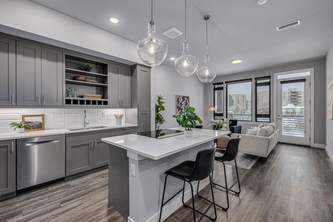 Experience luxury living in this stunning 1-bedroom + nonconforming bedroom/office condo in the Met South building of the highly desirable Lowry Boulevard One. This spacious, south-facing unit offers an open-concept layout with premium finishes throughout. The main bedroom suite boasts a private bathroom with a walk-in closet, floor-to-ceiling windows, and 10-foot ceilings, filling the space with natural light. **The additional nonconforming bedroom** comes equipped with a custom-built Murphy bed, pocket door and storage, making it ideal for a home office, guest room, or flex space. The contemporary kitchen is beautifully appointed with Bosch appliances, induction cooktop, large kitchen island with barstool seating, ample soft-close cabinetry with 14" deep uppers, a pantry, white quartz countertops, a stylish tile backsplash, and durable LVT flooring. Adjacent to the kitchen, the in-unit laundry room includes built-in shelving, and a washer and a dryer for additional convenience. Step outside to your private covered balcony and take in views of the lushly landscaped surroundings. The condo includes 2-car tandem parking in a secured underground garage and a same-floor storage unit just steps away. Situated in an unbeatable location, this condo offers easy access to Crestmoor Park just across the street, while the vibrant Boulevard One shops, restaurants, and Lowry Beer Garden and Clark’s Market are a short walk to the east. Hangar 2’s diverse dining options, including North County, Officer’s Club, and Rocket Ice Cream are just down the way, making this a perfect home for a lock-and-leave, low-maintenance lifestyle. Showings to begin 3/2 and available on 4/4.