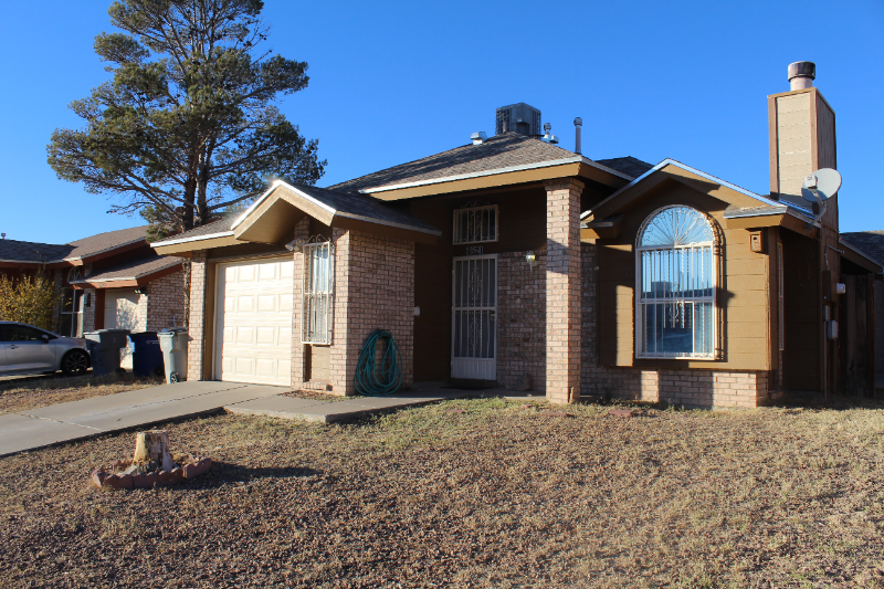 Property Id: 761730 Step into comfort with this single-story 1056 sq ft home, boasting 3 bedrooms and 2 baths, located in a serene cul-de-sac near Desertaire Elementary and a vibrant community park. Ideal for military families, it's just 10 minutes from Ft. Bliss and offers easy access to major commuting routes. Freshly updated to enhance your living experience, this home features high cathedral ceilings and a cozy fireplace in the living room—perfect for relaxing evenings. The adjoining dining area opens to a private fenced outdoor space, where tranquility meets convenience. Cooking is a delight in the kitchen, equipped with granite countertops and stainless steel appliances, including a refrigerator and stove. The recent addition of a sleek new vanity in the guest bathroom adds a modern touch to the home's comfort. Each bedroom is a peaceful retreat, with the master bedroom offering its own ensuite for added privacy. The gated backyard is an oasis of privacy, ideal for unwinding or entertaining.