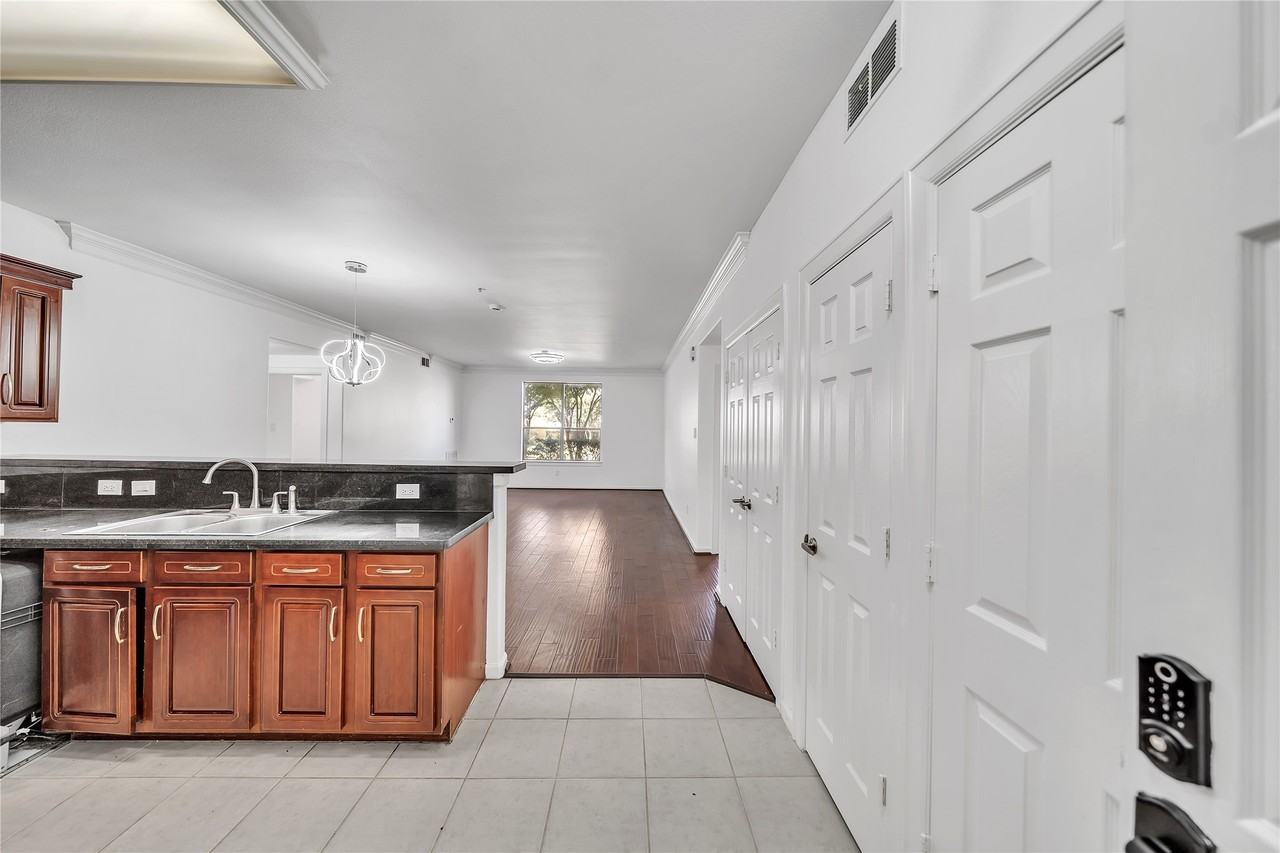 Gated Community. This home features an open split floor plan with crown molding in the spacious living room and granite countertops in the kitchen. Laminate wood flooring throughout. Includes full-size washer and dryer. Conveniently located with easy access to Beltway 8 and Highway 59, and within walking distance to shops, dining, and retail.