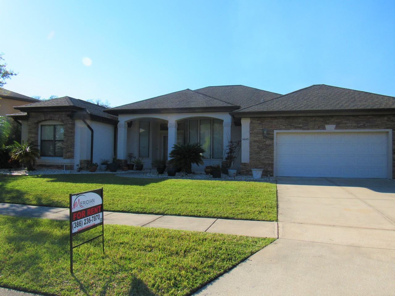 Welcome home! This luxury, 4 bedroom, 3.5 bath, pool home is located in the gated community of Covendale in Water's Edge, will be freshly painted throughout, and features formal and family areas that are perfect for entertaining. The formal living room, dining room, family room and kitchen all overlook the expansive covered lanai and screened pool area. The kitchen has a large center island and features 42" cabinets, a full appliance package, a built in wine bar, walk-in pantry, and a casual dining nook. The Kitchen flows into the family room, which features a triple-slider to the covered lanai and screened pool deck. The master suite provides ample room for over-sized furniture and has sliders to the lanai. The en-suite bath has a large walk-in closet, garden tub, step-in shower and a double vanity. The screened pool and spa is gas heated , providing year-round comfort and relaxation. Additional features include a separate A/C and water heater for the master wing, tile through heavy traffic areas and carpet in the living areas and bedrooms, ceiling fans throughout, an over-sized 2-car garage, comfort-sized bedrooms, step-in showers, a pool bath with an outside shower, and lush landscaping. Lawn and pool care included. Pet friendly. Zoned for Spruce Creek High, Creekside Middle and Cypress Creek Elementary. Minutes from I-95 and I-4, beaches, the river, shopping, dining and entertainment. Available December 9th, 2024. 12 month lease. Showings are by appointment, only.