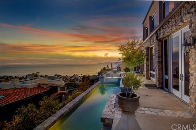 Live the dream as you lease this Tuscan inspired furnished estate nestled in the hills of Laguna Beach. Views abound of the Pacific Ocean, Catalina Island, San Clemente Island, downtown Laguna, white sand at Main Beach, and city lights at night!The location is ideal just minutes from the village and one can even hear the waves crashing on the beach. This exquisite home designed by the late Mark Singer will touch your heart with its warmth and charm. Baccarat crystal chandeliers and sconces provide elegant lighting. The main living area and chef's kitchen encompass the first entry floor. You will be motivated to create gourmet meals here with top-of-the-line appliances. Stroll out on the ocean view deck for breakfast watching the waves. On the level below you will find 4 bedrooms each with en suite baths and an expansive library/office for the most devoted book lover. The master bath is sumptuous with granite counters, dual vanities, a steam shower, dry sauna, spa tub, and spacious walk-in closet. Sunbathe next to your lap pool and relax in the spa gazing at the sunset. Your guests will love warming up next to the outdoor fireplace and eating grilled food from the BBQ. For an extra level of comfort inside, heating/air conditioning systems are on each level. Parking is a breeze with an attached 3 car garage, 4 spaces in the driveway, and ample street parking. Very accessible to nearby 133 Freeway/Toll Road as well as Pacific Coast Highway and Newport Beach a few miles North.