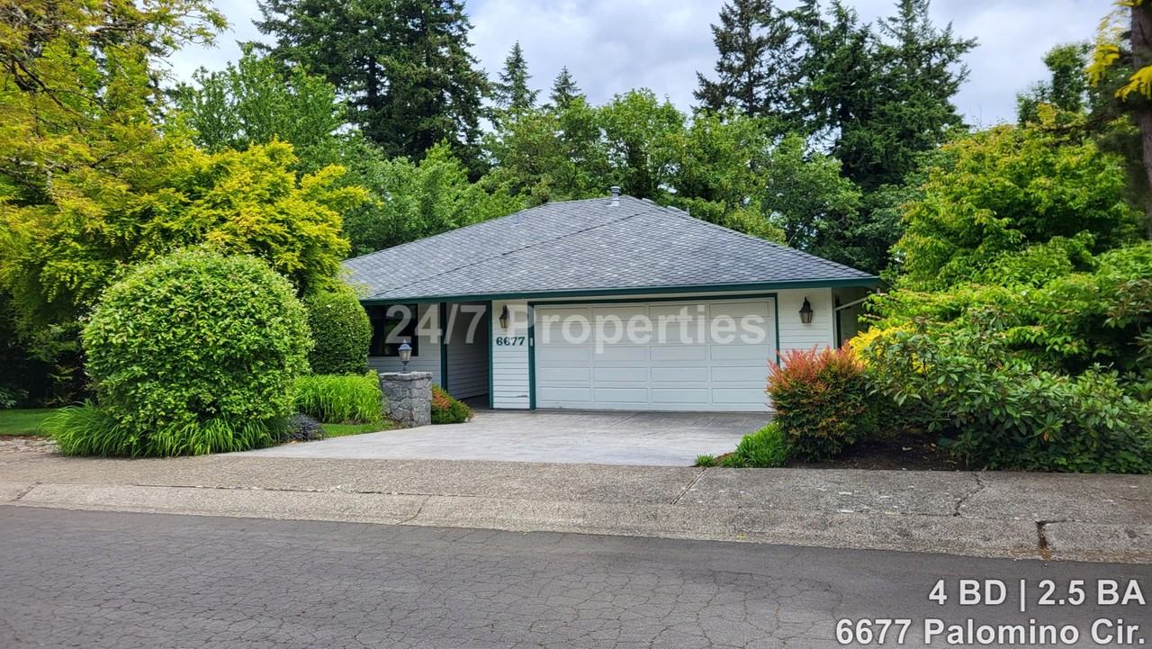 * 4 BD | 2.5 BA * Massive Upper Deck and Patio Below w/ Natural View * Large Closets in Every Bedroom * Attached 2-Car Garage * Double Oven and Drop-in Range * Ample Natural Light * Laundry Room - W/D Included * Central AC This gorgeous split-level home boasting nearly 2,800 sq. ft. is full of inviting spaces and convenient features. The primary suite on the main level opens to the back deck, while all the bedrooms on both floors come with large closet space for lots of storage. In the kitchen, you'll be welcomed by large windows, updated appliances, and a dining nook, with a formal dining area right around the corner. Living spaces on both levels include wood-burning fireplaces and the lower level includes a wet bar! Step outside to find a covered patio, and just above lies a spacious deck looking out to the beautiful signature greenery of the Pacific Northwest. Take in the tranquil view from home, or head out to find the Hidden Springs trail network just a few houses down. Farther up the street, enjoy access to the community pool and tennis courts at the Hidden Springs Recreation Association, and just across the highway lies the expansive Mary S. Young Park, with miles of walking trails and an off-leash dog park. With comfort, convenience, and amenity in spades, don't miss the chance to make this home yours today! Easy Access to Highway 43 and I-205 Elementary School: Cedaroak Park Middle/Junior High: Rosemont Ridge / Athey Creek High School: West Linn County: Clackamas Non-smoking property All applicants age 18 and over will require screening and a $55 screening fee. Pets Welcome - 2 max, 50lb limit. Each pet requires a $500 pet deposit + $50/month pet rent. Security Deposit: $3,595 + dependent on screening results Landscaping Included Washer/Dryer - Hookups Available All Utilities are Tenant's Responsibility Parking - Garage, Driveway, Street Access to Hidden Springs Recreation Association at tenant cost. This unit is not an accessible dwelling unit. * NOTE: If you are viewing this listing on a third party website, please visit WWW 247PROP COM to ensure accuracy of the listing description and availability.