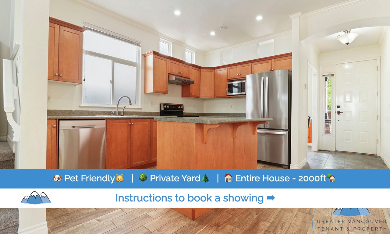 Please text us as per the information in the photos or contact us using the buttons available. If the home is ready for showings we will reach out to schedule a private showing with you. The home is available now! We are offering a spacious 4 bedroom + den/3.5 bathroom detached home in a quiet family neighbourhood. This 3 floors house include great features like kitchen appliances (fridge, stove, dishwasher, and microwave), fireplace, central heating & air conditioning, laminate, carpet & tile flooring, lots of storage space, large den/family room, instant tankless water heater, in home washer & dryer, backyard patio space, fenced in yard and approximately 2000 sqft of living space. The back lane garage allows for one vehicle and street parking is also available. Hillcrest and Adam’s Road Elementary are close by as well as Clayton Heights Secondary. Plenty of parks are within close proximity, and bus routes connecting to the Skytrain lines are within a few minutes walk. A large retail centre is within walking distance at Fraser Highway and 188 Street featuring Save On Foods, Starbucks, and many other restaurants and retail shops and services. – Neighbourhood: Clayton, Surrey – Type of Unit: Detached Home – Approximate Square Footage: 2000 – Number of Bedrooms: 4 + Den - Number of Bathrooms: 3.5 – Heating / Cooling: Heat Pump, Gas Furnace & Fireplace / Heat Pump Cooling – Number of Parking Spots and Type: 1 Garage Spot & Street – Storage Locker: N/A – Pet Policy: 1 pet permitted (35lbs max full grown) – Smoking: No smoking, growing, or processing any cigarettes, marijuana, or other combustibles on the property – Services Included with Rent: Water, Sewer Services and Garbage Removal – Tenant Responsible for: Internet, Cable, Hydro (electricity), Gas, Hot Water, Heat and Lawncare Deposit(s): 1 half of one months rent as per legislation Minimum Lease Term: 1 year then month to month Tenants Insurance is required at possession
