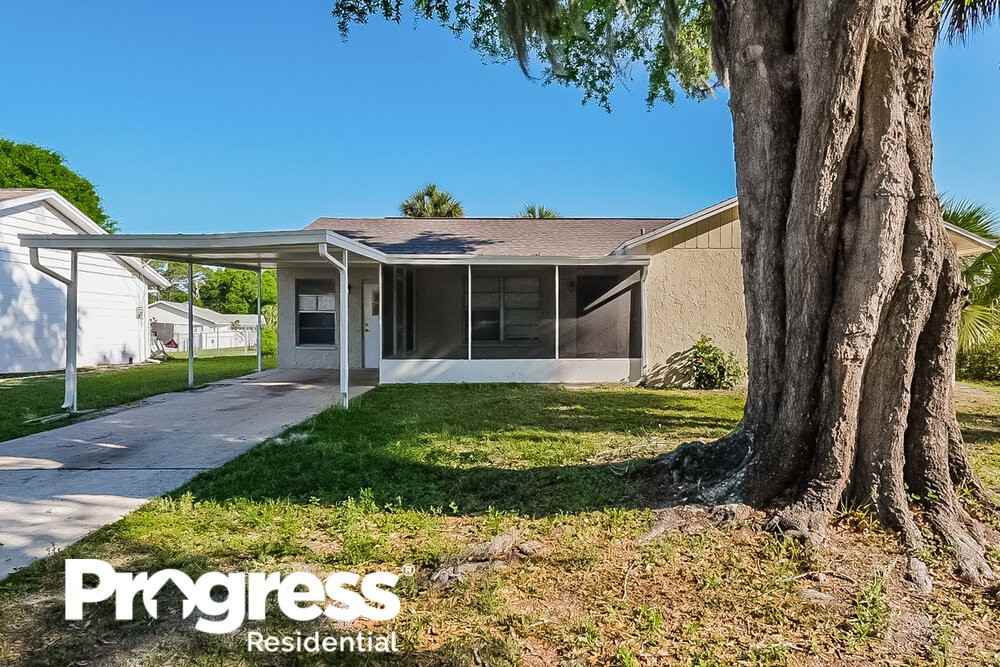 Want to tour on your own? Click the “Show Yourself In” button on this home’s RentProgress. com listing or call (813) 517-1988 to register for a self-guided showing at a time that works best for you. This New Port Richey rental home boasts screened-in front and back porches along with three bedrooms and two bathrooms in 1,379 square feet of space. Your tour of this renovated residence starts in the living room, which has attractive wood-look vanilla plank flooring along with big windows and a lighted ceiling fan. The kitchen provides modern granite countertops and a full set of appliances, including a built-in microwave. Steps away in the dining area, sliding glass doors lead outside. You’ll love having a big closet in the primary suite, which comes complete with a private bath containing a tiled shower and updated fixtures. Your pets will love playing in the fenced backyard. Book your tour today!