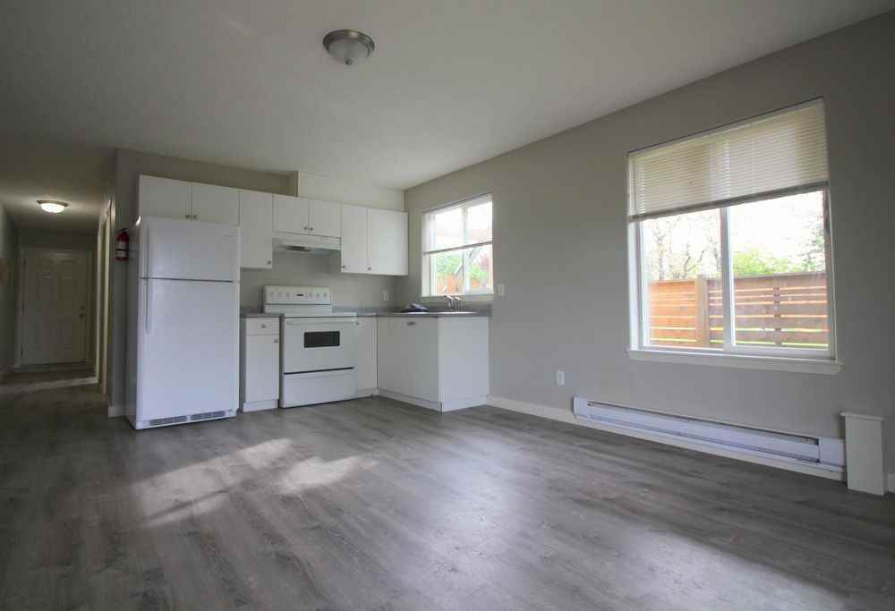 Available Immediately!! Two bedroom one bath suite with big fenced yard, lots of off street parking and pet friendly. Rent $1400 one year lease required, Damage Deposit $700 and Pet Damage Deposit $700 if required.