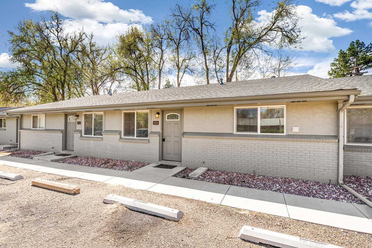 Spacious 2 bedroom, 1 bath unit of a 4-plex with a private, fenced backyard. 58th Place dead ends, so there is very little traffic going by your front door - and your backyard is sheltered with mature trees. Close to Old Town Arvada, public transportation, highways/light rail, trails, shopping, restaurants, etc. Your new home was fully renovated in the last 6 years, including hardwood floors throughout, new kitchen cabinets, and granite counters. Stackable washer and dryer in your unit. Ample off-street parking. Make sure to check out the floorplan in the pictures. Call or text for your private showing. 303-241-5343