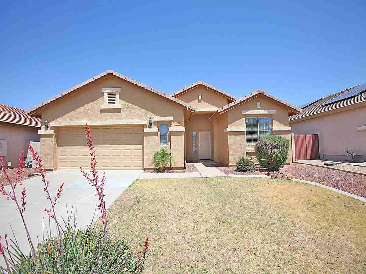 4 Bed + 2 Baths in Terramar Community. Great location! Close to schools and food. Kitchen features island, range/oven, built-in microwave, fridge, and dishwasher. Large living area. Master suite features dual sinks, separate tub and shower, private toilet room and walk in closet. Backyard features covered patio, grass and desert landscaping. Ceiling fans and blinds throughout. 2 car garage with opener. *To schedule a viewing please call 623-263-9157*