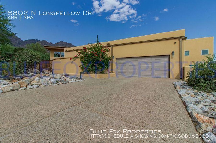 This 2014 New Build on a quiet side street in the peaceful Catalina Foothills is ready to be your new home! Enjoy the gorgeous 365 degree mountain views and the natural Sonoran Desert landscape, while lounging under new awnings on 1500 Sq ft of outdoor patios, outdoor kitchen area, 900 sq ft of astroturf, and a master bedroom balcony. Within walking distance of the Pusch Ridge Wilderness trailheads, you'll have easy access to great walking, hiking, bike riding, swimming, and golfing amenities nearby. Just 5 minutes from upscale shopping and dining. Located in the coveted Catalina Foothills Unified School District #16. We invite you to experience the Sonoran Desert, there is no place else like it on Earth (literally!). Including 4 bedrooms, 2.5 bath, a gourmet kitchen with high end appliances and laundry room with washer/dryer included. Ample storage space in house and garage, including walk in closets all bedrooms. Monthly landscaping included. Unfinished bsmt not included. Come see this gem, you will fall in love. This home is available November 1st. The rental rate is $4400.00 per month and the security deposit is $4500.00. If pets are allowed and approved, there is a $25.00 monthly pet fee per pet, plus a $150 non-refundable pet fee, per pet. Pets are subject to owner approval. 2 pets ok. Our residents are automatically enrolled in our Resident Benefit Package. The cost of this program is $29 per month. For more information regarding this program, please go to www bluefoxproperties com to the For Residents tab on the banner and click on the Resident Benefit Package on the drop down menu. Every adult age 18 and over must complete an application. The application fee is $55 per adult. The application process includes credit, criminal, previous rental history, employment and income verification. Our minimum rental requirements include the following: 1. The applicants' household verifiable gross monthly income must be 3 times the rental rate. If you are concerned about insufficient income, you may be able to address this concern by adding a cosigner or offering additional security deposit. Contact us for details. 2. All our homes are offered as non-smoking. No smoking is allowed on the premises, inside or outside the home. 3. Reasonable credit. If you are concerned about challenged credit, you may be able to address this concern by adding a cosigner or offering additional security deposit. Contact us for details. 4. We do not accept Section 8. 5. Applicant to provide proof that debts to previous landlords have been satisfied. An eviction can be grounds for denial. 6. No felonies for the past 10 years related to property damage, illegal substance manufacturing or distribution, or assault. Other criminal activity may be grounds for denial. 7. All pets are subject to approval. 8. No bankruptcies that have not already been discharged. 9. All current or pending collection accounts owed to any utility companies must be paid in full, with no exception and must provide a receipt from the collection agency or utility company stating the collection fee has been paid or settled. 10. You must fill out an application on www bluefoxproperties com Applications submitted through any other site will not be accepted and Blue Fox will not be responsible for any refunds. Blue Fox Properties is an Equal Opportunity Housing provider. We are also licensed REALTORS. 12 Months