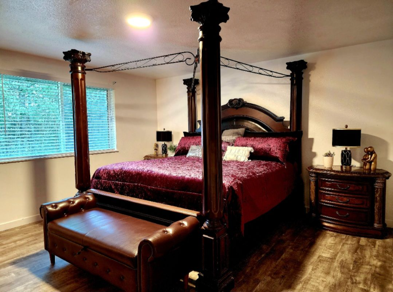 Property Id: 1517149 Beautiful private, large acreage property with peaceful walking trails, creeks and water features. The house is a 1 level, 2000 Sq ft. 3 bedroom 2 bath, open floor plan, light and bright with vaulted ceilings. The very large Master bedroom with private master bath and walk in closet. Comes furnished or not. The kitchen has tons of room with newer appliances. You will be sharing the house with a 31 year old man and his 7 year old very well behaved son. You will be expected to pay half the utilities which include electricity, and internet. Drugs and alcohol not allowed.