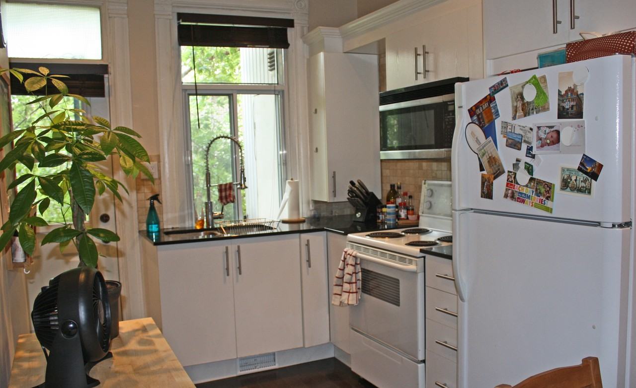 Rent is $1150 for a second floor apartment in a triplex with two closed bedrooms. Available from mid September or the 1st of October. The first bedroom has wall to wall closet with a sliding door. We use the second bedroom as an office, it fits two desks easily. The apartment has an open concept kitchen and living room with renovated bathroom. It comes with a washer/dryer, microwave and air conditioner. However it does not come with a fridge or stove, we are selling ours so if you are interested we can leave them for a reasonable price. There is also a balcony in the back with a storage closet and space for a small BBQ. The balcony is surrounded by plenty of trees so it is very private. The Little Italy area has everything you could need. The apartment is a few minutes walk from the Jean Talon Market and the Italian grocery store and is surrounded by lots of amazing cafes and restaurants. It is about a 10 min walk to the Jean Talon Metro station and about a 15 min walk to two larger grocery stores. It is also a 15 min walk to Plaza St-Hubert with many lovely shops.