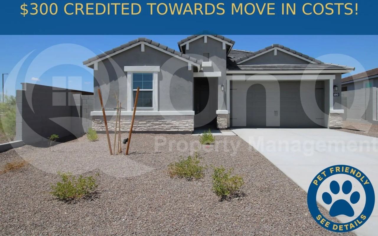 $300 CREDITED TOWARDS MOVE IN COSTS! 2,051 SQ FT! 3 bedroom, 2.5 bath new build house in Peorias Aloravita community! Desirable single story floor plan with modern smart home features throughout. Trendy eat-in kitchen with expansive breakfast bar, walk-in pantry, and stainless steel appliances including gas range wall oven! Open concept living/dining with off kitchen dining nook and sliding patio door access, perfect for entertaining. Neutral interior wood tile flooring in all the right places! Blinds. This home has 3 generously sized bedrooms each with ample closet space. Large primary suite has a split floor plan for optimal privacy. Features include a full bath with double vanity sink, walk-in shower, private toilet room, and expanded walk-in closet with built-in shelving! Secondary bedrooms connect to a full Jack and Jill bathroom. Laundry room includes a new washer and dryer! 2 car garage, corner lot, and N/S exposure. Enjoy a low maintenance yard with a covered patio, extended pavers and turf! Aloravita is a well maintained community with walking/biking trails and playgrounds. Fantastic location with mountain views and nearby shopping dining!Pet Policy: Dogs and Cats Allowed with the following exceptions: 2 pets max will be considered upon approval!. A $35 Pet Rent per month per pet will be added to the rental amount (when applicable). (Service Animals - Please refer to the Resident Qualification link below)3D Virtual Tour: https my matterport com show ?m=ZsZfaxVJqrEThis home is managed by On Q Property Management. To apply online, schedule a self-tour, and view our resident qualifications - Go to OnQRentals com Please use the On Q Rentals website or click the following link to submit your application: https onq findigs com apply unitid=d5cfab4e-a934-45ef-9cab-56ddeb7e17f3Review the Resident Qualification Requirements and Fee Structure: www onqpm com tenant-qualification-marketsFind out how you can lower your upfront move-in costs with our Security Deposit Alternative program: www depositalternative com