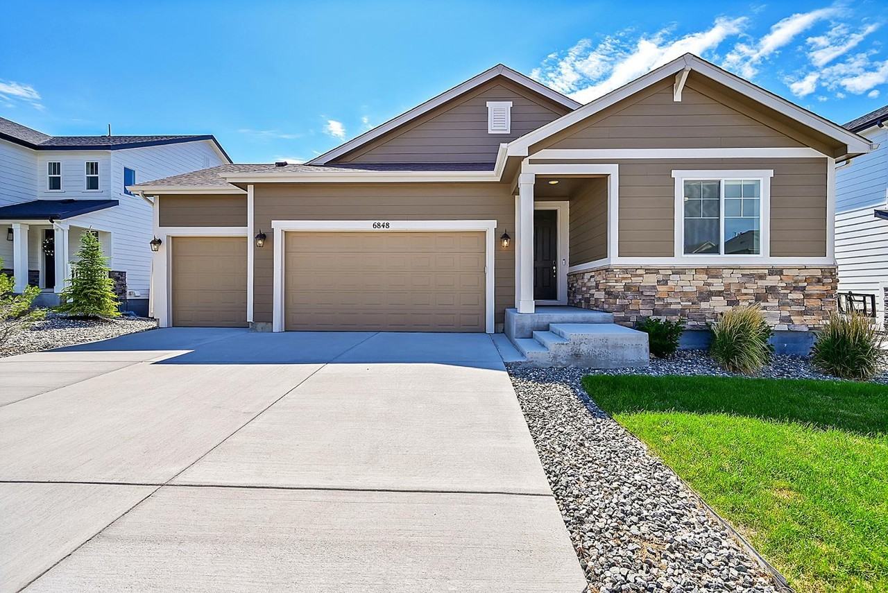 Experience contemporary living in this pristine 3,377 SF ranch-style home located in the Villages at Castle Rock. Constructed in 2021, this immaculate residence features a generous open floor plan with sleek stainless steel appliances, showcasing a modern design. The main level includes a gorgeous kitchen open to the dining area and living room with a walkout to the wood deck, 3 bedrooms, 2 bathrooms, a laundry room and a 3-car garage. The walk-out basement is equipped with a large wet bar/kitchen, spacious family room, 2 additional bedrooms, a full bathroom and ample storage. This home blends comfort and luxury in a sought-after area with convenient commuting options. Additional features include an underground sprinkler system, central air conditioning, water softener, and washer and dryer included. Trash services and several clubhouse amenities to include a pool are also part of the rent. (www.PikesPeakSunshineProperties.com)
