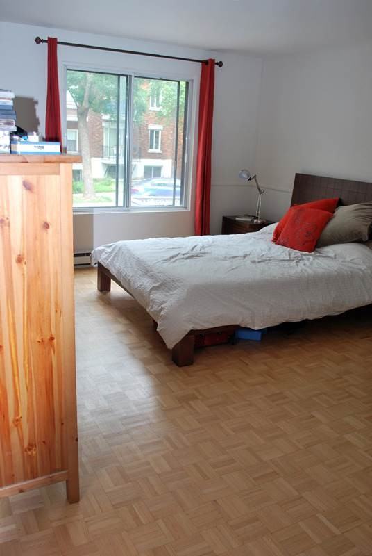 Big room 13'(4m) x 16'(5m), furnished or not (to be discussed), soundproofed and freshly painted, in a big 6-room condo of 1500 sf occupied by owner, located in great neighborhood West Rosemont (Beaubien Cinema, Moslon Park, bakery, cafes). Balcony and big terrace, furnished living and dining rooms, full-equipped kitchen, familial room in basement, garage, washer-dryer. 5 min. walk from Iberville station (blue line towards Univ. of Montreal / HEC) and of grocery stores, pharmacies, etc. Rent includes shared rooms, appliances, electricity and HS Internet. References required.