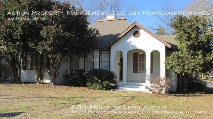3-bedroom apartments at 689 Ponce De Leon Avenue cost about 25% less than the average rent price for 3-bedroom apartments in Montgomery.