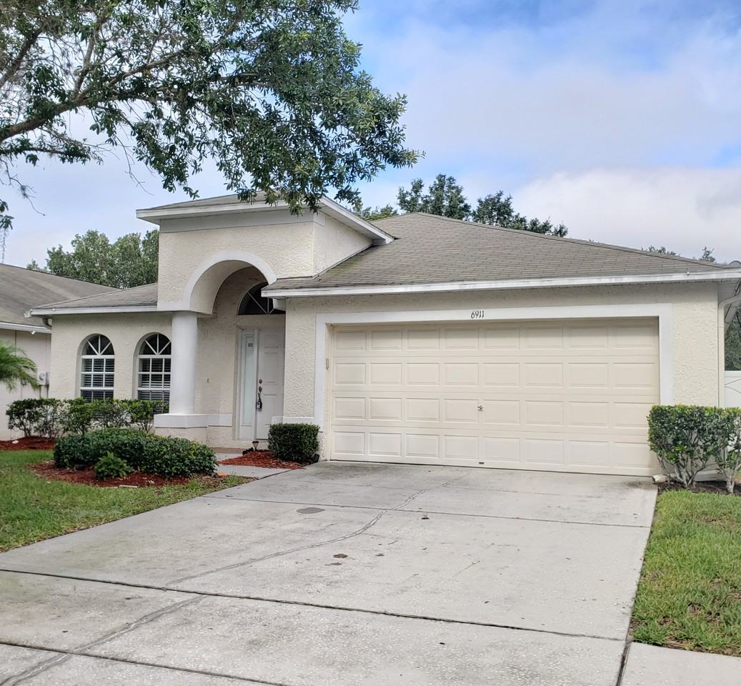 Wonderful 4 bedroom, 2 bath Bridgewater single story! This Wesley Chapel home has an open floor concept with a formal great room, kitchen with center island and spacious living room. Tall ceilings throughout! The primary bedroom offers a large walk-in closet and the en-suite bath has a glass enclosed shower, garden tub, lavatory and dual vanities. There is access from both the primary bedroom and family room to the HUGE privacy fenced backyard! Each of the other bedrooms have nicely sized closets and a shared hall bath with double sinks. Comes complete with full size washer and dryer. Bridgewater is located near great schools, SR54 and I-75, the Premiere Outlet Mall and the Wesley Chapel District Park! LAWN CARE included. Call Home Locators at 813-908-8555 x 3 today!
