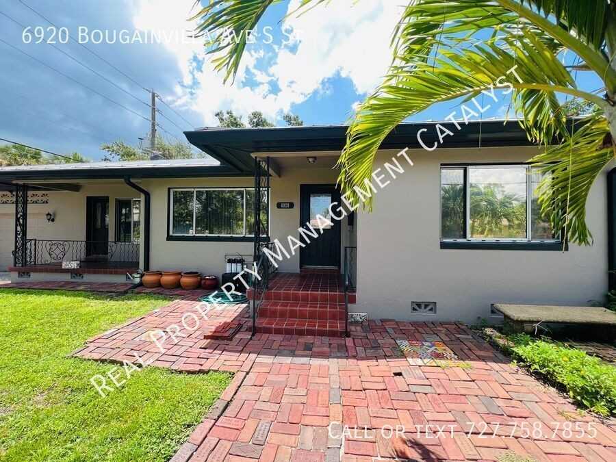 Beautiful and artful 3 bedroom 2 bath home in the desirable Old Pasadena area. The home has held its unique character with modern conveniences. It sits on an oversized lot with a large fenced backyard. You will appreciate the well maintained hardwood floors and charm of the architecture. The third bedroom has a separate entrance which could be used as an office or hobby room. A 1 car garage adds space and convenience. The kitchen has concrete counters with refrigerator, gas range oven, microwave and dishwasher. Out front you will appreciate the art work throughout the yard. In back you have more then enough space for entertaining under the covered patio and large fenced backyard along with two functional sheds for hobbies or storage space. You are minutes from the beautiful white sand beaches, entertainment, shopping and dining! You don't want to miss out on this beautiful charming home. Schedule a showing today online: https showmojo com l 348a83905a 6920-bougainvilla-ave-s-st-st-petersburg-fl-33707 **This home is security deposit free for qualified applicants via Obligo.** Rental Terms -Annual Lease minimum -Rent: $3,050 -Application Fee: $75 one time -Security Deposit: $3,050 -Resident Benefit Package: $40 per month -One Time Lease Administration Fee $150 Applies -Available Now Pet Policy: - Pets Allowed - Dogs - Limit 2 & 35 lbs or less - Pet Rent & Non Refundable Pet Fee Applies - Pet Screening is a required part of the application process for all applicants. Appliances: -Range/Oven - Gas -Refrigerator -Dishwasher -Microwave No Utilities Included Amenities: -Concrete Counter Tops - Kitchen -Lawn Service Provided -Hardwood Floors -Two Storage Sheds (1 with electric and AC) -Large Yard -Fenced Yard -Covered Back Patio -Vintage decor items throughout home -Yard art -Laundry Room with Washer and Dryer -Minutes drive to St Pete Beach Beach -Conveniently located to Old Pasadena restaurants, shopping & entertainment. All Real Property Management Catalyst residents are enrolled in the Resident Benefits Package which is $40 monthly and includes HVAC air filter quarterly delivery (for applicable properties) and required renters personal property and liability insurance, online resident portal. More details upon application. No HOA **The information contained in this advertisement is subject to change. The terms of any lease, should you execute a lease with RPM Catalyst, are found solely in the Lease Agreement itself, along with any applicable addenda. Situations that may affect change include, but are not limited to an applicant's credit rating which may affect the required security deposit amount, and new information provided to us regarding a unit that we did not know at the time we placed this advertisement.*** 1 Car Garage Concrete Countertops Covered Back Patio Large Fenced Backyard Pet Friendly Second Shed Shed With Electric And Ac Vintage Decor Items Washer And Dryer Yard Art