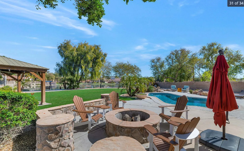 Property Id: 1236127 A beautifully updated, lake front, 3 bed/2.5 bath with HUGE .5 acre resort style backyard with pool, fire pit, outdoor kitchen (grill & smoker), fully fenced, in a GATED community! Pets welcome with approval, additional security deposit/rent. (Rent includes weekly pool service) Inside, you have a fully updated, double master suite layout with built in closets and high ceilings. We also have an EV charger outlet, water softener and a outdoor barrel sauna. There's no other place like it in Glendale!