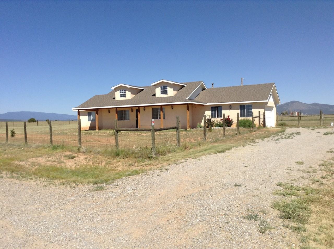 Northern New Mexico style home in Edgewood. 1487 sq. 3br/2bth features fenced front and backyard. Dormers give Brightness and Style to Master Bedroom and Living Room area. Gas fireplace, Oversized 2 Car Garage. Large Master Bath and Closet. Panoramic Views.