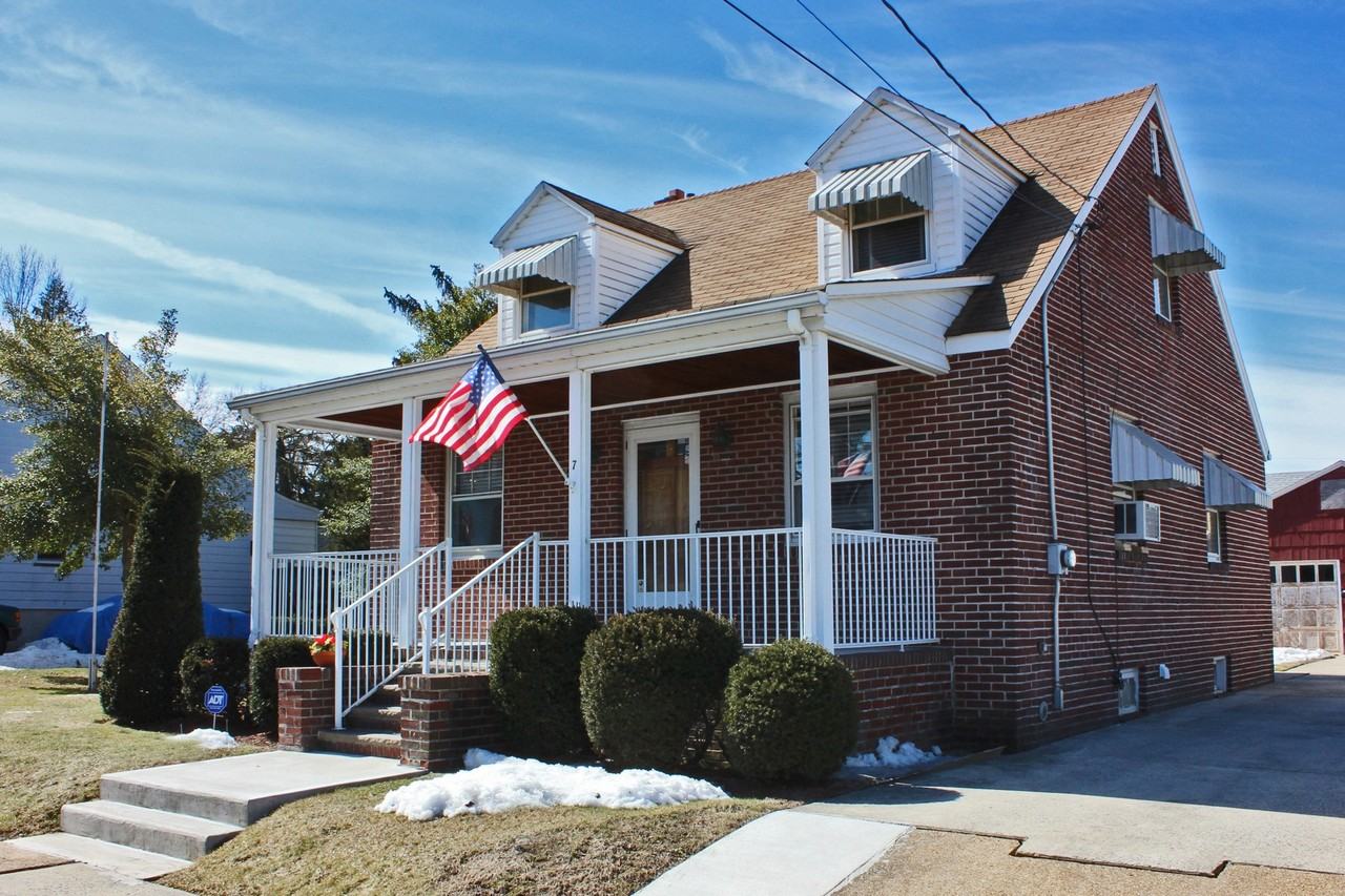 4 Bedroom, solid, all brick Cape on large lot! Wood floors, large eat-in kitchen w/enclosed back porch/mud room. Full walk out basement rec space w/bath. 2 Bedrooms up and 2 bedrooms on 1st floor. Pretty, large property offers grass yard to play and space to garden. Rocking chair front porch large detached garage. Well maintained cared for. Room sizes are approx.