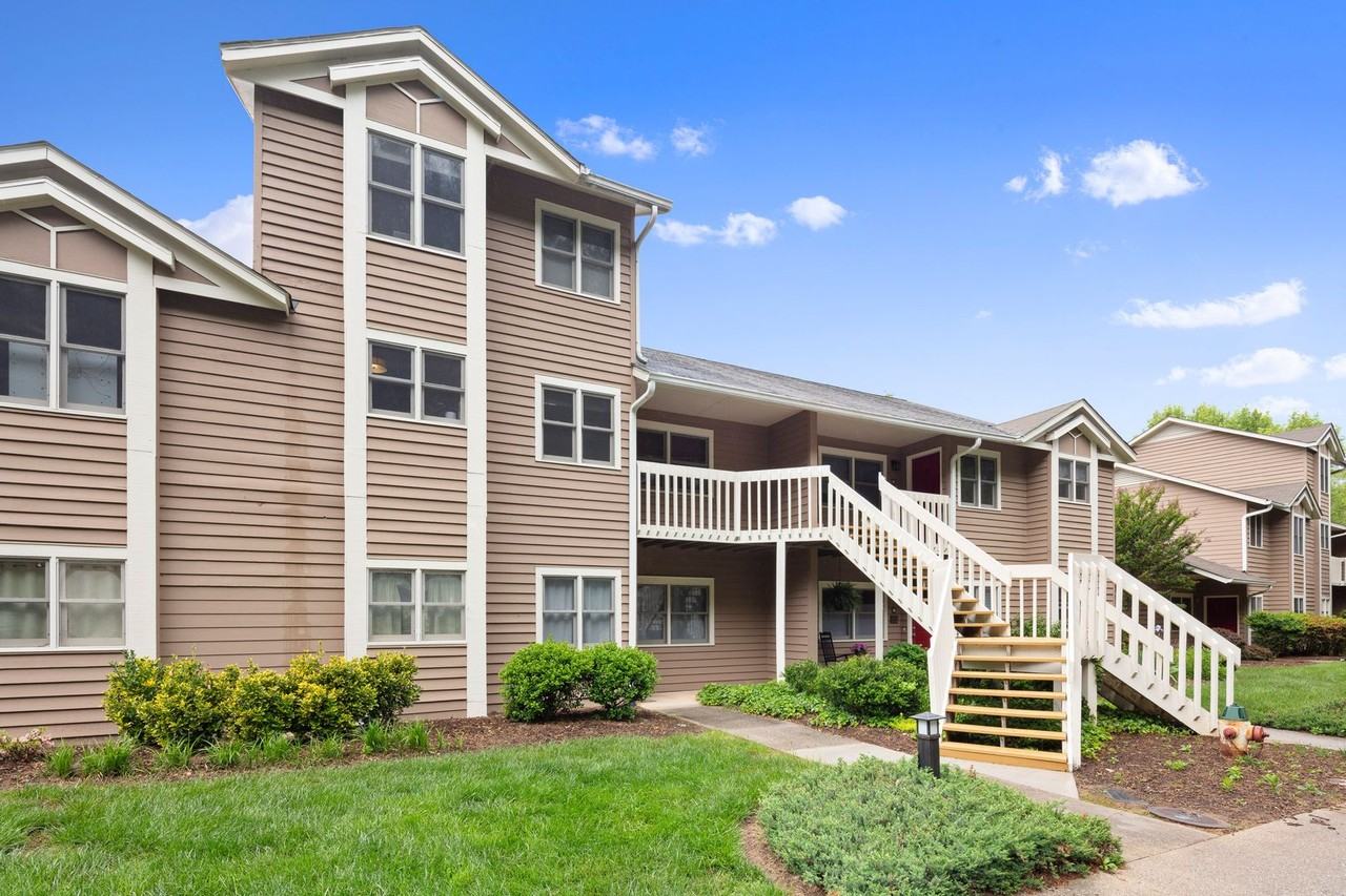 APPLICATION PENDING Ground floor condo in the gated Laurel Creek community with amenities including pool and tennis! Tranquil setting just a mile from the Blue Ridge Parkway and 10 minutes from downtown Asheville. The entryway and kitchen have tiled floors, and great-looking vinyl plank floors are throughout the open dining and living room. The kitchen offers a breakfast bar and nice appliances including the refrigerator, smooth-top electric range, microwave, and dishwasher. A private porch off the living room borders lush greenery and the creek that runs through the community. The primary bedroom suite includes two closets and an en suite bathroom. Bedrooms are carpeted, and each bathroom includes a bathtub/ shower combo. Laurel Creek amenities include a clubhouse, pool, tennis, and playground. Laundry closet off hallway - the washer and dryer will remain for tenant use but will not be repaired or replaced by the owner. Central heat and air conditioning, all electric. Tenant responsible for all utilities including electricity and water. Landscaping included! One dog under 25 lb or one cat negotiable - HOA rules dictate that pets are not permitted outdoors unleashed. No smoking. No cosigners.