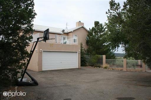 (RLNE1878673) Lovely custom home with a great floorplan! Three generous bedrooms downstairs with walk-in closets. Two living areas, kitchen, and dining room upstairs with fabulous views, and two wonderful decks. Located on private wooded corner lot with a paved driveway. Front courtyard, and separate backyard for dogs. Extra-large 2-car garage. Call Lee for more information or to schedule a showing, (505) 730-5232.