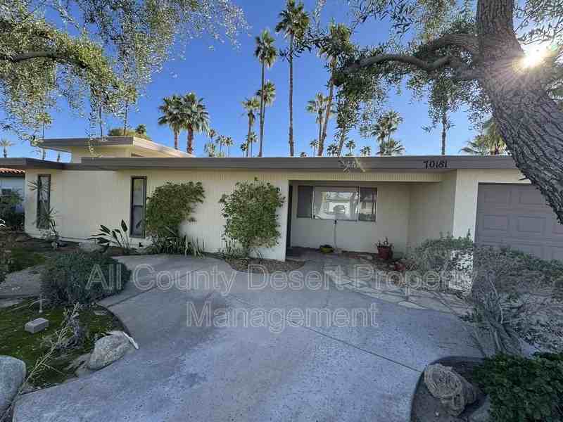 Welcome to this inviting single-story home located at Sun Valley Dr in Rancho Mirage! The entrance features a charming flagstone walkway winding through mature desert landscaping and agave plants, leading you to a classic mid-century modern residence defined by distinct vertical siding and deep roof overhangs. Inside, the spacious open-concept living area features glossy beige tile flooring, recessed lighting, and a ceiling fan that ensures year-round comfort. A large picture window floods the room with natural light and offers peaceful views of the front yard’s greenery. The bathroom is updated with a large dual-sink vanity featuring a granite countertop and ample white cabinetry for all your essentials. A standout feature of this home is the exceptional storage space found in the walk-in closet areas, which are lined with custom floor-to-ceiling white shelving and illuminated by unique high transom windows. Step outside to enjoy the functional exterior space, which includes a wide driveway with a basketball hoop and a convenient covered carport area. The property is surrounded by established trees and towering palms, offering a true Rancho Mirage desert lifestyle. All applicants must pass a comprehensive background screening including income verification and landlord references. Renter's insurance is required. All applicants must have the following: monthly income of at least 3 times the monthly rent, a good rental history, and an acceptable credit score. If you see this home advertised online for less than the rental amount quoted here, the ad is a SCAM. We are the only authorized agent for this property. Please email us a link to any bogus or fraudulent ads so we can report it to the appropriate authorities. Please do NOT send money to anyone who offers keys in exchange for a deposit check - especially if they are out of state. When in doubt, please feel free to contact us.