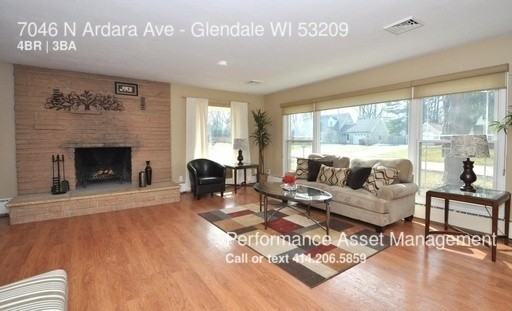 7046 N Ardara Ave, Glendale WI 53209 RENT $2000 SEC. DEPOSIT $2000 AVAILABLE NOW - Mid-Century Modern Single-Family Home - 4 bedrooms -2 full baths, 1 half bath - Sits on quiet cul-du-sac - Sunny great room with natural stone fireplace - Hardwood floors throughout - Kitchen features white cabinetry and stainless steel appliances -All kitchen appliances included -Washer and dryer in unit - Bath recently renovated with double vanity and separate shower & tub - Finished basement with fireplace, bedroom & full bath - Screened porch opens to scenic backyard - Pets are negotiable based on the strength of application & type of animal. Pet charges will apply. To schedule a showing please call (414) 206-5859 OR paste the following link into your browser and register: https://showmojo.com/74f367e0ac/listings/mapsearch START RENTING WITH P.A.M.! - Your Own Online Portal! - Pay Your Rent Online! - Make Service Requests Instantly! Experience PAM's Unmatched Dedication to Service! Please, NO pit bulls and NO prior evictions. NO exceptions. Performance Asset Management | www.pammke.com