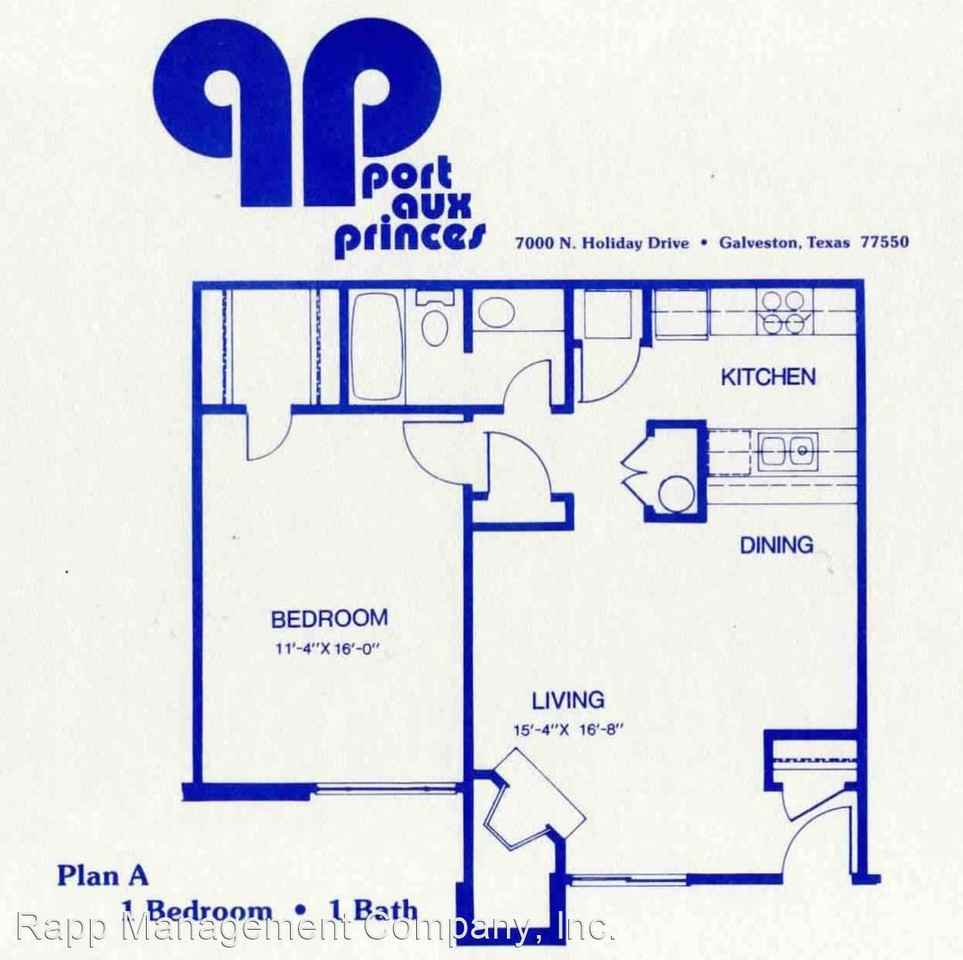 Port Aux Princes Condominium- One bedroom unit - 2nd floor Port Aux Princes Condominium, wood/brick veneer exterior, near UTMB. This is a one bedroom, one bath unit. Living room is large and open to the dining area. All appliances are included. Water, trash, and sewer is paid by HOA. Tenant pays electricity, and cable/internet if desired. Unit includes on covered parking space. Near Dog park and recycling center.