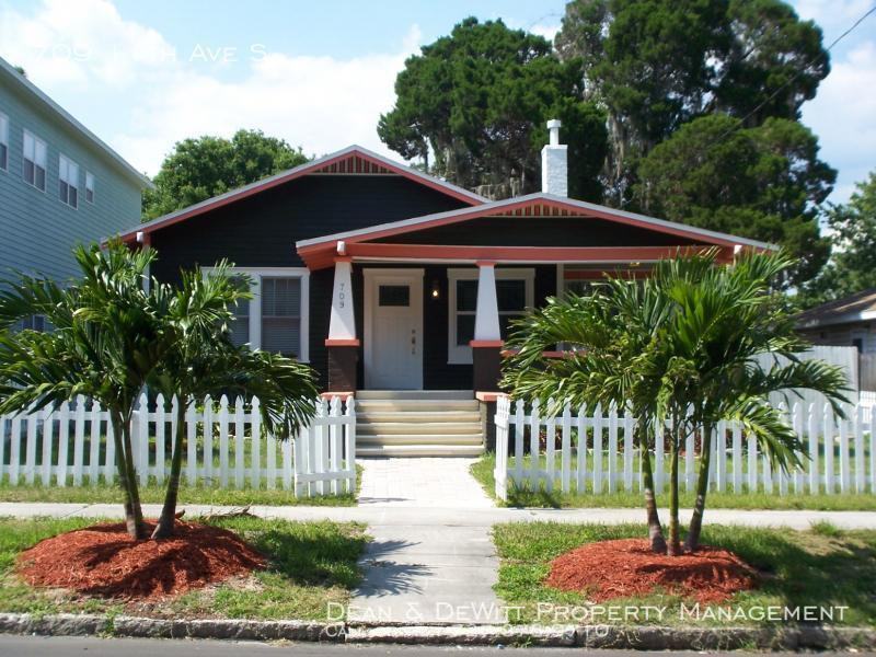 Available now for move in within 30 days 12 month minimum lease A truly beautiful and unique home with 1920's character but fully updated and nicely landscaped. Wonderful front porch with porch swing. LR/DR combo with decorative fireplace, double basins in bath, granite counters and stainless appliances in kitchen. Master BR has large walk in closet with built-ins plus the original closet Laminate hardwood and tile flooring Separate laundry with washer/dryer Large back area for parking - alley access Fully fenced for privacy Central air Lawn service included Tenant pays all utilities Dogs and cats OK (limit 2) with pet app fee of $50, minimum $300 additional deposit for dog and $200 for cat, $25/mo per dog and $15/mo per cat. Current shot records, photo, animal license and renter's insurance for dogs. $50 non-refundable application fee for each adult covers credit and background check. $100 administrative fee will be charged upon approval. The unit will not be reserved for applicant until administrative fee is received by management. Once paid, management will process tenant, create lease, send move in instructions, etc. Security deposit due upon approval; Full first month's rent (regardless of move in date) due prior to move in Basic approval requirements include a gross monthly income of three times the rent, a clean background, and fair to good credit All Dean & DeWitt properties are currently transitioning to no smoking properties. No smoking is permitted on premises Please drive by and schedule a showing at rentinstpete. com find-a-rental