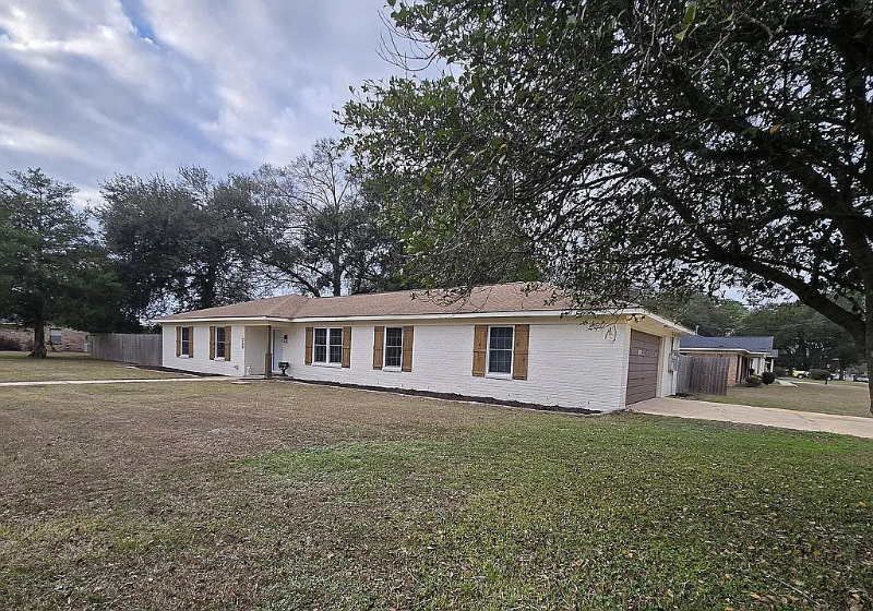 - Freshly painted brick exterior