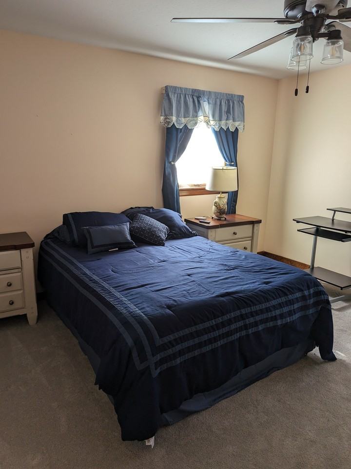 Furnished bedroom in tranquil neighborhood, near 64 and 295 for easy access to anywhere in Richmond. Bedroom with private bathroom has queen size bed, dresser, desk and a smart TV with WiFi and several streaming services. You have access to the kitchen, dining area, living room, laundry room and a wonderful sun room. There's also a great yard with a patio furniture and a grill that you can use. All the appliances and cookware you need are included as well as utilities. Free parking. Must see to appreciate. Google maps shows neighbors house, not mine