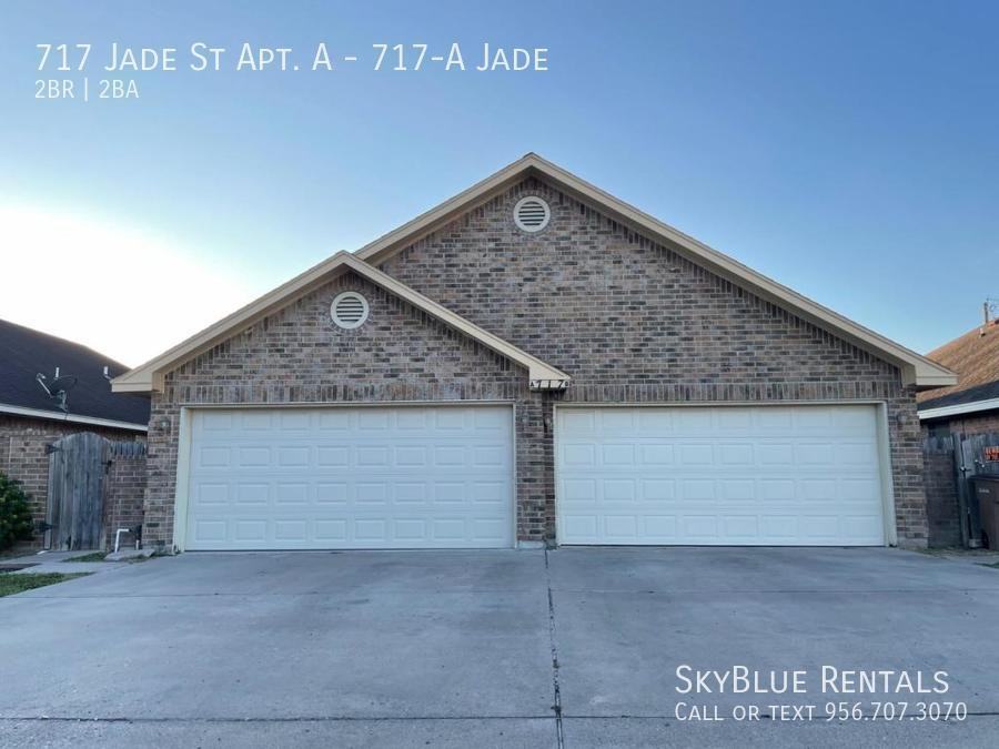 APPLY NOW! Schedule a Showing or Apply online here -->https tinyurl com 717-A-Jade 2 Bedrooms 2 Bathrooms apartment with a garage, apartment with a spacious backyard, excellent location! Between Jackson Rd and McColl Rd on Schunior St. Appliances & Features: Refrigerator and Stove Utilities NOT included Lawn maintenance included Fenced backyard 2 Car Garage Pet Friendly Lease Term: 12 mo. lease. Apply Now or Call/Text (956)436-5193 to schedule a showing. Year Built: 2005 Rental Assistance: No Fifty-five plus: No Multiplex: No