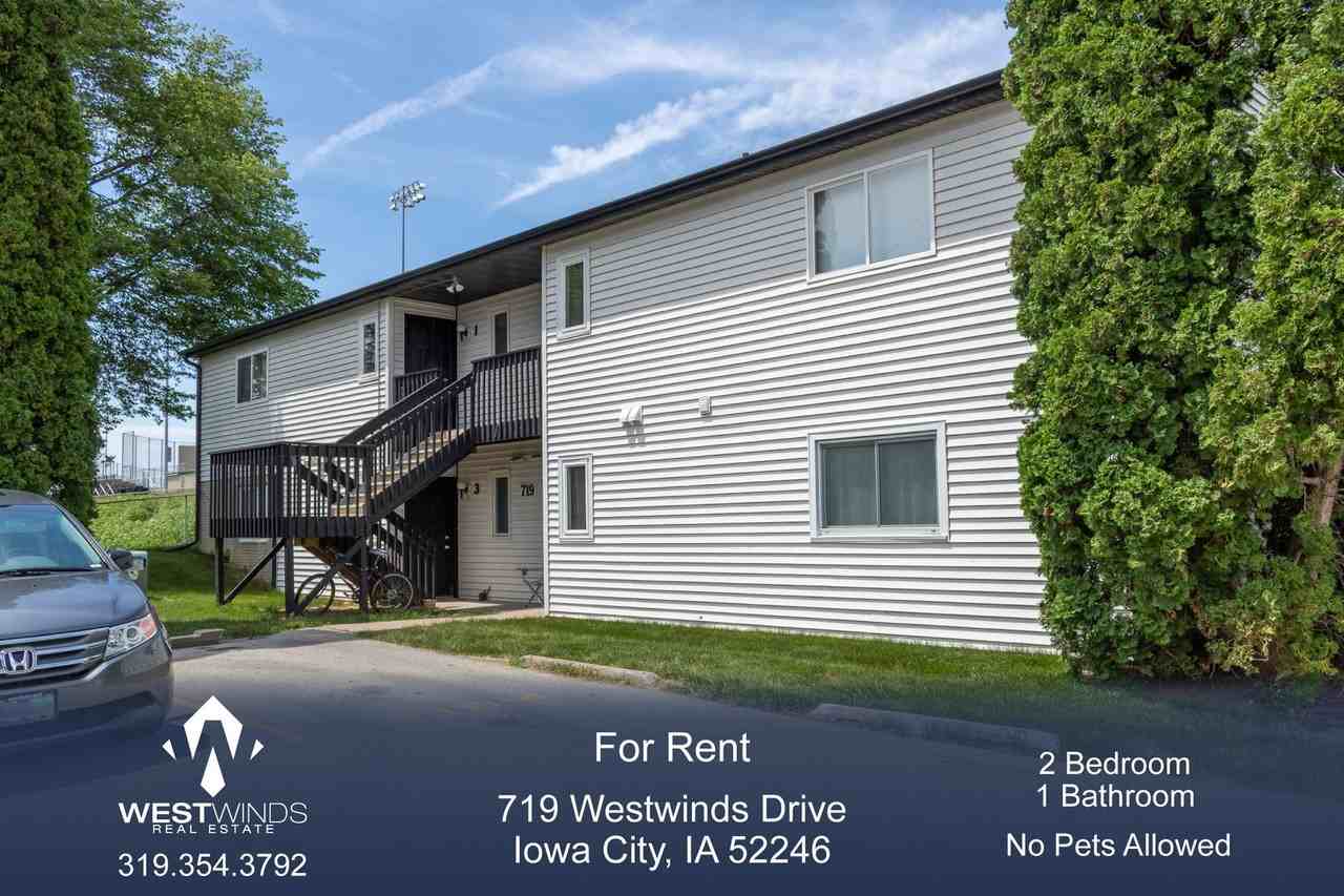 This 2 Bedroom, 1 Bathroom Condo is available for August 1st, 2026 Move In! [VIDEO TOUR - SIMILAR UNIT - 801 #04] https youtu be yYtx6Z0jrt8 Copy this link to your browser to schedule a showing at your convenience. https secure rently com properties 5871325?source=marketing 2 Bedroom, 1 Bathroom condo located in Iowa City. This 2nd (Top) floor condo is located on the west side of Iowa City and features off street parking and central/forced air heating and cooling. The kitchen features dishwasher, breakfast bar, plenty of cabinetry space and (included) washer & dryer! The living room is spacious and offers access to a walk out deck and connects to one of the bedrooms via double door. The additional bedroom features built-in bookshelves and a walk-in closet. Conveniently located near schools, UI Hospitals & Sports, grocery, bank & restaurants. On bus line and easy access to Hwy 218 & I-80. Included in Rent * Garbage * Lawn Care * Snow Removal * 1 Assigned Parking Spot Not Included - Tenant Responsibilities - Electricity & Gas: MidAmerican - Water: City of Iowa City Additional Disclaimers * Photos/ Floor Plans May be of a similar unit * No pets allowed Please visit our website for additional rental properties, for application details, schedule showings, and much more! https westwindsrealestate com