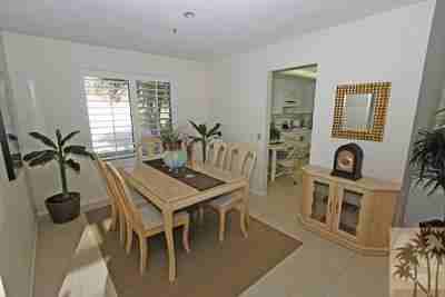 Spend your vacation relaxing in this wonderful 3 bedroom, 2 bath condo located within the Rancho Las Palmas Country Club. The condo provides a light, airy and beautifully decorated condo is perfect for your desert retreat. Enjoy morning coffee in the atrium with its lush plantings or relax by the pool just steps away. The master bedroom has a king size bed, the 2nd bedroom has a queen and the 3rd bedroom has 2 twin beds.