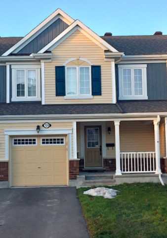 Pride of ownership evident in this tastefully decorated 3bdrm, 2.5 bath Eastland model in immaculate condition. Many upgrades in kitchen including granite/quartz counters, upgraded stainless steel appliances with water dispenser at refrigerator, custom island with seating, mosaic back-splash and over the range microwave. Perfect home for entertaining with open concept kitchen/dining/living room. Hardwood floors on main level and ceramic tile in all wet areas. Upgraded carpet throughout second level. Beautifully finished 4 pc. main bath with large vanity and spacious bathtub. Large master bedroom with walk-in closet and en-suite. Master en-suite boasts granite counter vanity with back-splash and frame-less glass walk-in shower. In house laundry with upgraded LG appliances, garage door opener, all window coverings and central A/C included. This property sits on a premium lot with extra long drive way with 2 parking spaces. 3rd parking space in garage if desired. Close to all amenities. This home will be available as of 01-April-2017 (earlier in March if weather permits). Did I forget to mention...no rear neighbours?!? A definite must see! $1550/month + utilities Rental application and credit check is required. First and last month’s rent required. No smoking or pets. To book a viewing please call 613-265-7317