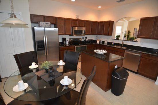 This newly built air-conditioned home has 6 bedrooms and fulfills the dream of an amazing Orlando adventure. A traveling group of 14 can be comfortably accommodated in this villa. All bedrooms are provided with new flat screen TV’s and classy furniture. If you want to have a relaxing nap, a sleeper sofa on the second floor is a good spot. There are 2 master bedrooms in this home. The first master bedroom is located at the ground floor with en-suite bathroom and shower. The other one is on the second floor and bathroom also has a shower, tub and 1 vanity. The kitchen island is a very comfortable corner for preparing your favorite home-made meals at the kitchen area and a table with 4 seats. At the dining area, there is a table with 8 cozy seats. Washer, dryer and ironing equipment are all provided in the laundry room. The pool area has a safeguarding fence to be set up when your kids are present. It comes with a pool and bubbling spa. You can take your children’s and have fun at the playground. There is also a volleyball and basketball courts where you can play all day long. Or a simple family bonding and share some snacks at the picnic area. (RLNE615009)