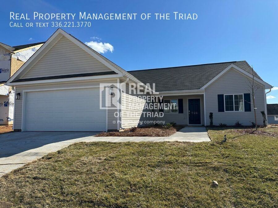 Move-in Ready! Explore this stunning single-level new construction home, where modern living meets exceptional design. Features 3 bedrooms, 2 bathrooms, and approximately 1,500 square feet of thoughtfully designed open-concept living space. Enjoy vaulted ceilings in both the living area and primary bedroom, which are filled with natural light from the large windows, a spacious patio out back – perfect for outdoor relaxation or entertaining. LVP floors in main areas and carpeted bedrooms. The kitchen is a chef's dream, complete with granite countertops, an extended island, soft-close cabinets, and sleek black appliances: Fridge, stove, microwave, and dishwasher. New washer/dryer, left as convenience only. Additional upgrades include modern LED lighting, updated bathroom vanities, blinds on all windows, and all electric heat pump for central heat/air. 24 month lease, Security Deposit and Lease Administration Fee Apply. Copy and paste the following link in your web browser for convenient scheduling: https showmojo com l 5b6b5080e0 Or call our agent for a showing! 336-355-6688 AVOID RENTAL SCAMS: Real Property Management is a licensed Real Estate Agency and exclusively markets and represents this listing. We do not advertise on. We would never ask you to wire money, request funds through a payment app for initial rent, deposits, or take the key after your showing to move-in. Back Patio Carpet In Bedrooms Granite Countertops Kitchen Island Lvp Flooring Vaulted Ceilings