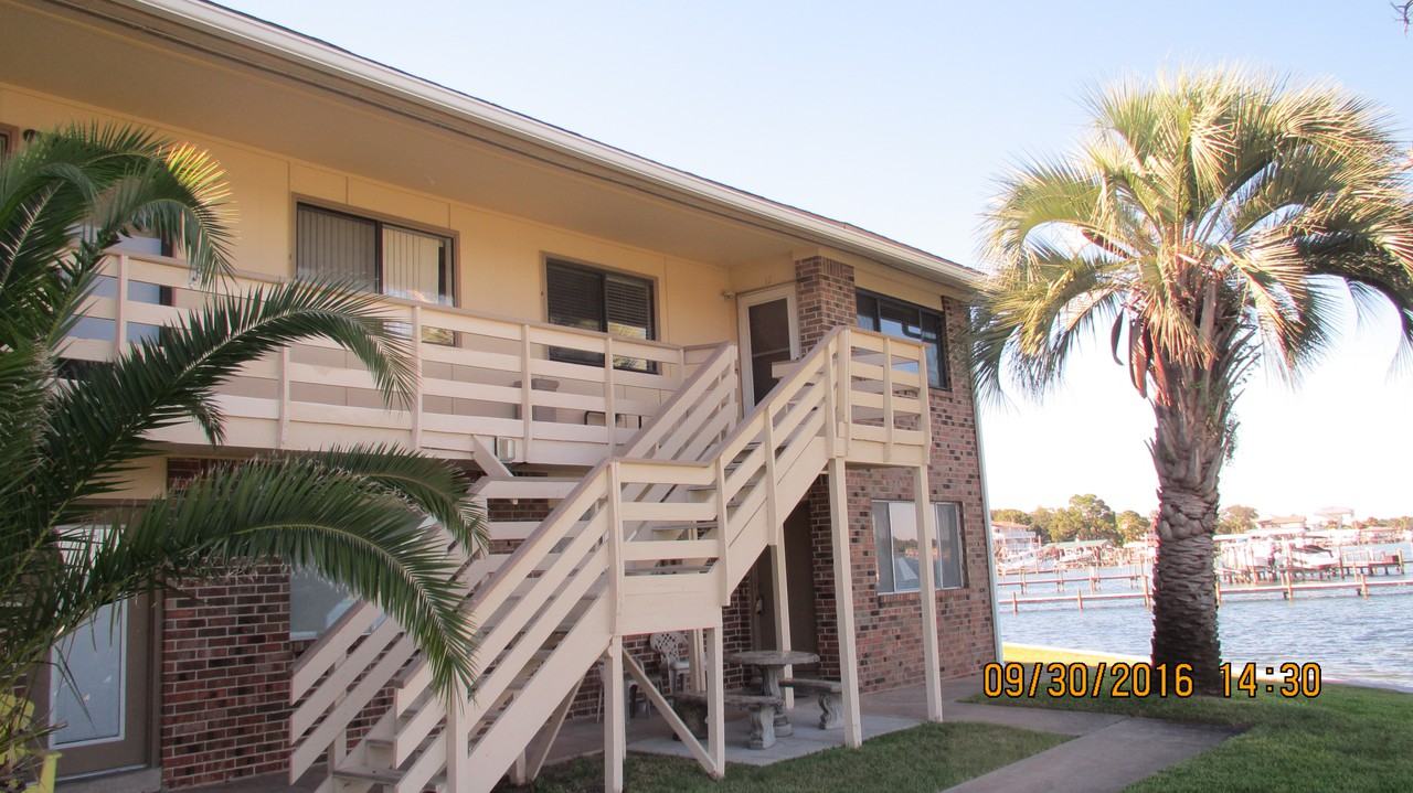 2 bedroom, 2 bathroom waterfront unit that has a washer/dryer in the unit. Watch the sunrise from your living room or master bedroom every morning. There is a community pool and dock to enjoy as well. Water, sewer, trash and basic cable is included in the rent.
