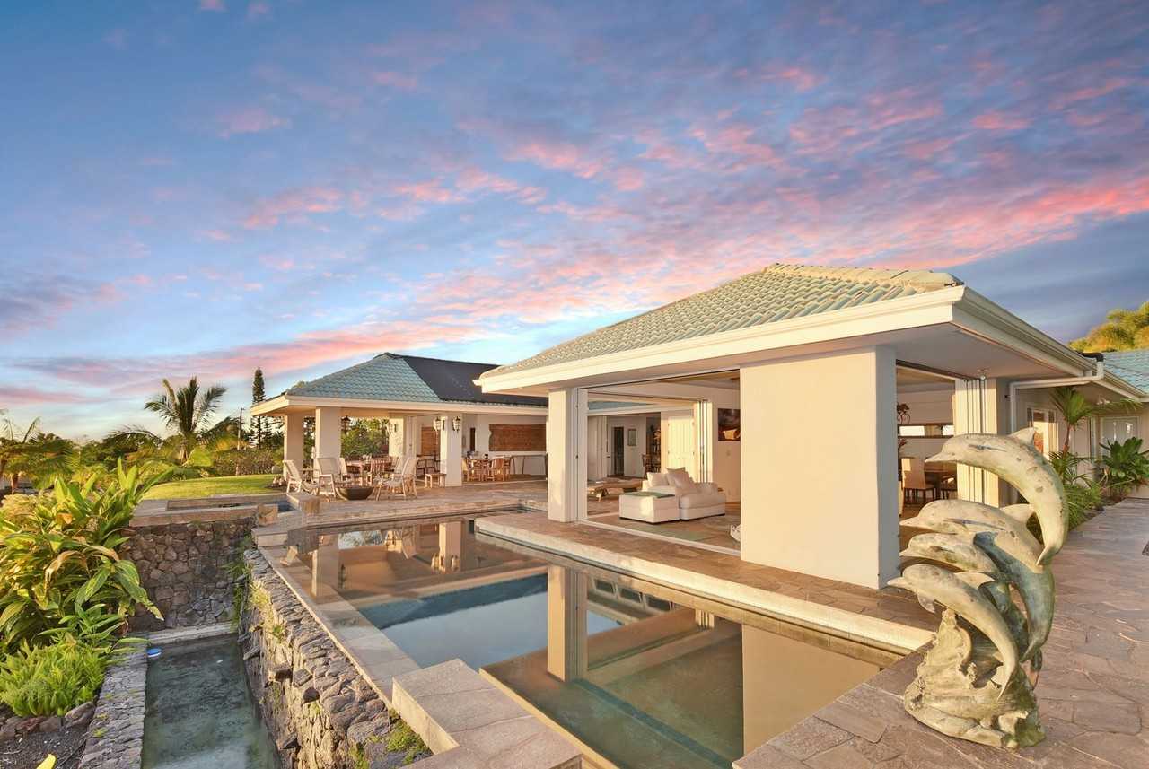 Discover the epitome of luxury and tranquility at this stunning 3-bedroom, 2-bathroom estate, nestled in the prestigious gated community of Kona Hills. Situated on a sprawling 1-acre property, this home offers unparalleled privacy and serenity, surrounded by lush, mature fruit trees that add to the tropical ambiance. Step inside and be greeted by an open, airy layout designed to blend indoor and outdoor living seamlessly. The expansive living spaces feature elegant finishes and pocket sliding doors that open up to reveal breathtaking panoramic ocean views, inviting the cooling trade winds into the home. The natural breeze and thoughtful design provide a comfortable, refreshing atmosphere throughout. The highlight of this luxury retreat is the infinity-edge pool, solar-heated for year-round enjoyment, and the propane-powered spa, perfect for relaxing under the stars. Imagine lounging by the pool, watching the sunset over the Pacific Ocean, or soaking in the spa after a day of adventure. A spacious 3-car garage offers ample storage, and the property is located just minutes from world-class beaches, shopping, and dining, making it the ideal home base for enjoying all that Kona has to offer. Indulge in the ultimate Hawaiian lifestyle—this is more than a home, it’s your personal paradise. We kindly ask potential renters to submit an application before scheduling a showing for this property. The application process allows us to ensure that the property is a good fit for your needs and to verify that you meet the necessary requirements for tenancy. Once the application is received and reviewed, we will be happy to schedule a viewing at your convenience. We appreciate your cooperation in this matter and look forward to helping you find your new dream home. An application fee of $38.00 would apply to all applicants over the age of 18. Rental security deposit is equal to first months rent. No smoking, and no recreational drug use permitted. Rent is $8,500/month plus general excise tax. Renters Insurance Required. Tenant is responsible for electricity & propane. Monthly administrative fee applicable to new leases. Pono Property Management LLC 808.334.0548
