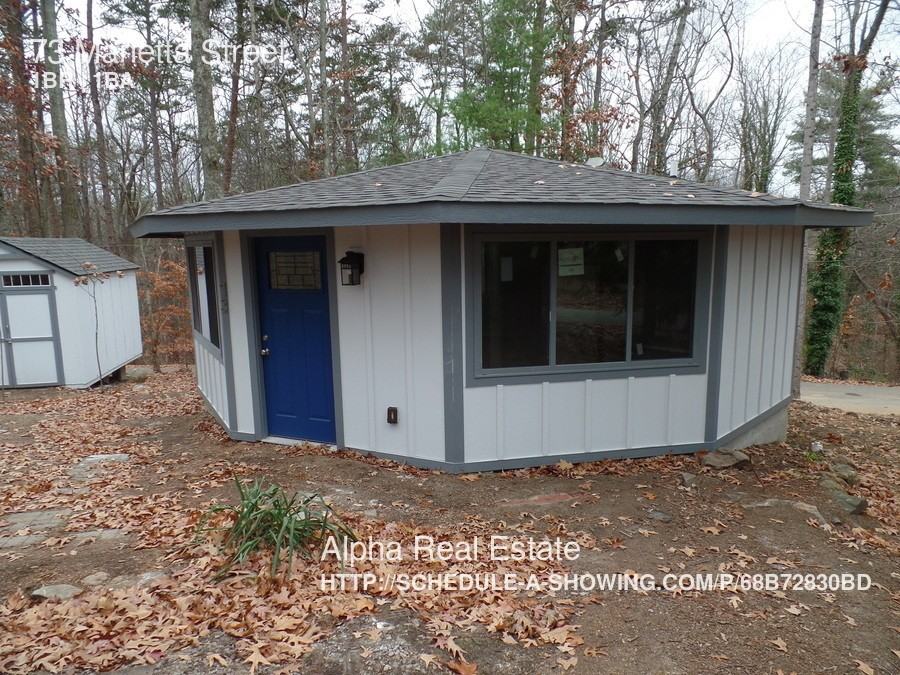 This home was torn down to it's studs and completely rebuilt! From the floor to the roof is all just completed. Recessed lighting in the ceiling will light up the new Hardwood Flooring, Granite countertops, Stainless Appliances with the wrapping still on them and your new hardwood cabinets! What this rondette lacks in square footage it makes up in attention to the finer things! New Mini-split HVAC provides cost effective AC in the summer and Affordable heat in the winter. Huge windows look out over you shady lot. The lots out back is all woods and the dead end road will allow for a reduced traffic flow. Large storage shed to store your extra stuff and we are doing some landscaping updating now. You gotta go out and see this place if your in the market for something small but jam packed with updates! Brand new Stackable Washer and Dryer included in the unit! The new softer wood floors will not allow for a dog but cats or other pets are negotiable. *No Smoking *Sorry No Doggies *ALL NEW EVERYTHING *Available now