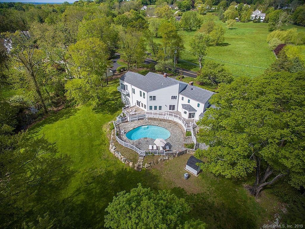 Set on 2 acres of Westport's premier Turkey Hill neighborhood, the open floor plan of this contemporary home is filled with light and gorgeous views of its farm-like surroundings. With almost 5,000 sqft of living space the rooms flow graciously into one another with fluid style - dark floors, light walls, crisp trim and features and huge windows all around. Enter into a two story foyer and massive living room with several conversation areas. There is a formal dining room with fireplace and sliders to the wraparound deck. The absolute heart of this home is the beautifully renovated kitchen with top appliances, a huge island and dining area placed in front of the window seat and cozy stone fireplace. There is a sunny sitting room just off the kitchen and French doors lead to the deck and pool area for optimal entertaining. The first floor also has an office and powder room. Up the wide signature staircase is a stunning master suite with 2 huge closets, 2 sitting areas, marble bath and a balcony. There are 3 additional family bedrooms and 2 full baths on the second floor as well as an open lounge area and laundry room. The lower level is partially finished with playroom/guestroom and full bath, plus a second laundry room and plenty of storage. The gorgeous yard surrounds the in ground pool and provides tons of open space for play and privacy! 2 car garage. So close to the Greens Farms train station, a stone's throw to the beach, school and all that Westport living has to offer!
