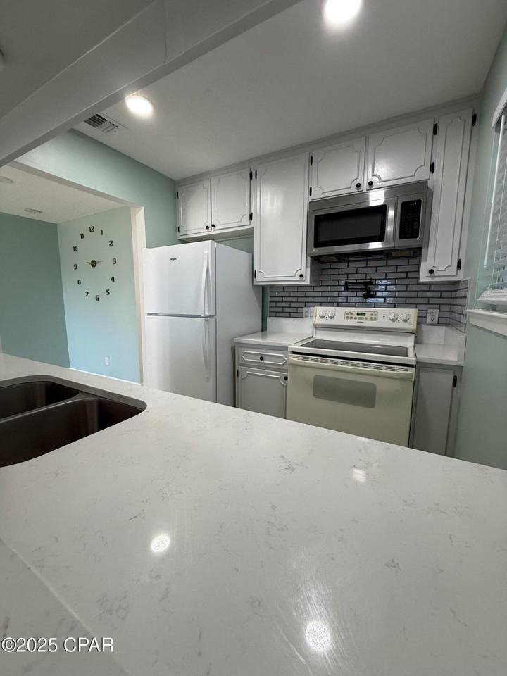 Beautifully updated 2BR/2BA duplex just blocks from the beach! This spacious rental features an upgraded kitchen with modern cabinetry and appliances, plus a dedicated laundry room offering plenty of additional storage. Both bedrooms are generously sized, and the bathroom is well-appointed for comfortable everyday living. Enjoy a fully fenced backyard, perfect for outdoor relaxation, pets or extra privacy. Located in a quiet Panama City Beach neighborhood close to shopping, dining, and beach access. Rent is $1,600/month. No HOA. Tenant responsible for power. Water and trash is included.