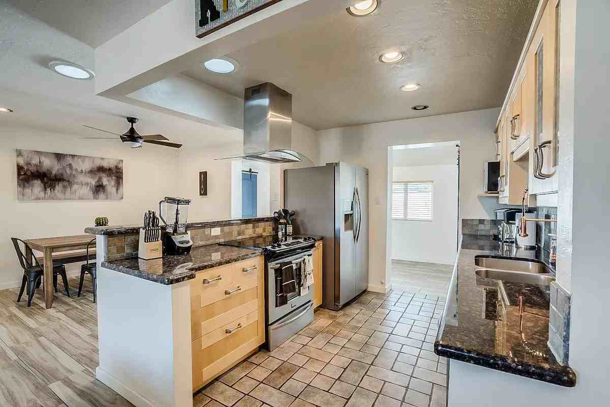 South Scottsdale 2,000 square feet 4 bedroom/ 2 bathroom home that has recently been renovated with all brand new furniture & a fresh design! We take pride in ownership, and invite you to come relax at our newest 4 bedroom home of the fleet which features a very relaxing environment, a private pool in backyard, private BBQ, Smart TV's in living room & master bedroom, strategically located close to Old Town, Tempe, Sky Harbor Airport, Downtown and much more! The space From the beautiful wood plank tile floors, modern kitchen & resort backyard, you'll love every personal touch. The open concept living room with gas fireplace and plantation shutters opens to the kitchen with sleek cabinets and stainless appliances and large dining room. The bonus room has access to the spacious pantry on one side & oversized laundry on the other. Stylish barn doors keep everything looking sleek and modern. The baths have been remodeled with granite counters and tile showers. We just spent over 25k converting the garage summer 2022 into a custom game room perfect for entertaining your group! With a wet bar, large mounted TV, arcade games, pool table, and couch. Refreshing pool, pavers, artificial grass and covered patio make this backyard your personal retreat, ready for friends and family to enjoy while visiting Scottsdale! Guest access Guest will have access to the entire home. Including the custom game room, and backyard with pool access + BBQ access. Other things to note NO DIVING is allowed in the pool and no glass is allowed in the pool either***. Pets allowed at flat rate of $50 per pet. Please pick up after your pets! If any remainder droppings are left there will be fees issued upon cleaning as needed.*** Absolutely no illegal streaming through the WIFI while staying at the house.*** All children under the age of 16 need to be supervised in the backyard or water at all times, no matter what their swimming skills. All guests are acknowledging that they will not leave any children unattended in the backyard or on the property.*** Pool heat is available