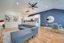 Modern duplex built in 2022 offering 3 bedrooms and 2 full bathrooms with sleek, contemporary finishes throughout. The open-concept layout is perfect for everyday living and entertaining, featuring a stylish kitchen with quartz countertops, a black subway tile backsplash, pendant lighting, and modern hardware. Durable tile flooring runs throughout the main living areas, with carpeted bedrooms providing added comfort. The primary suite includes a private en-suite bath, while the secondary bedrooms are well sized and versatile. This home includes a refrigerator, washer, and dryer, making it truly move-in ready. Like-new construction, thoughtful design, and low-maintenance living make this duplex an excellent place to call home.