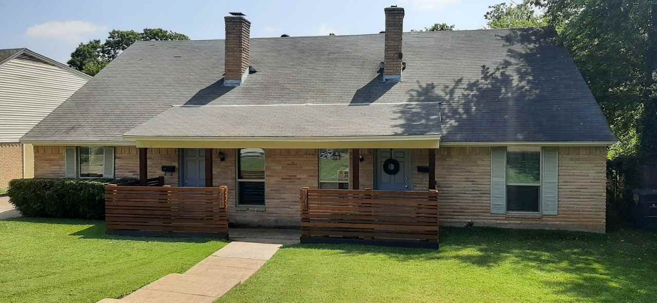 This duplex is in the University Manor/Merriam Park area and around the corner from the White Rock Lake Dart Rail Station on Northwest Hwy. You are minutes to Central Expressway, Northpark Mall and White Rock Lake. The downstairs has a 2 story vaulted den as you enter with a large fireplace separation between the den and kitchen and breakfast areas. There is also one bedroom and a full bath. Upstairs there are two bedrooms and a full bath. Great storage and room sizes. Low utilities with newer hvac and vinyl window replacements. Freshly painted, both bathrooms just updated and hard surface floors in all rooms except bedrooms. All lawn service is included. Compare to the two bedroom rentals and you will agree this larger home is a bargain! Available for June move-in.