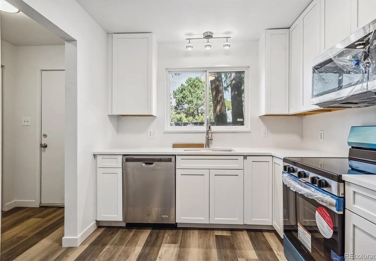Townhouse in a prime location. The spacious interior features numerous updates, including new stainless steel kitchen appliances, fresh paint, and new carpet and flooring throughout. An open concept layout seamlessly connects the kitchen to the dining area and expansive living room. Sliding glass doors flood the space with natural light and open to a private, fenced patio garden perfect for grilling. Upstairs, two bedrooms each feature new ceiling fans and share a newly updated full bath. The versatile lower level offers flexible space. You'll also appreciate ample storage in the laundry room and a dedicated covered carport (#31). Community amenities include a pool, sauna, fitness center, and club room. Enjoy easy access to I-25, I-225, light rail, shopping, dining, bike trails, and parks.