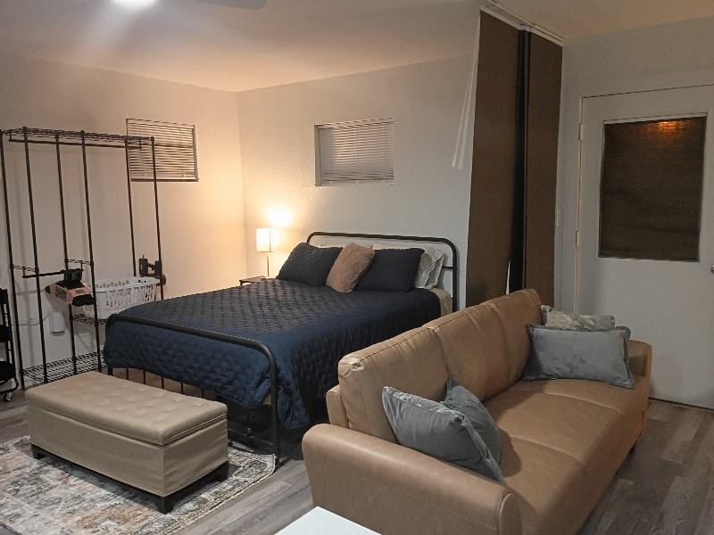 Property Id: 2362564 500 sq ft studio, full kitchen, washer/dryer, parking in gated driveway. Small private patio and enclosed yard. Close to shopping and restaurants, near water craft rentals and Laughlin. 15 minutes to WARMC and 20 minutes to Valley View. Kitchen has full size oven/stove, air fryer, microwave, blender all dishes, utensils and cookware. Bed and Bath linens If pet is approved there is a Non-refundable $250 deposit