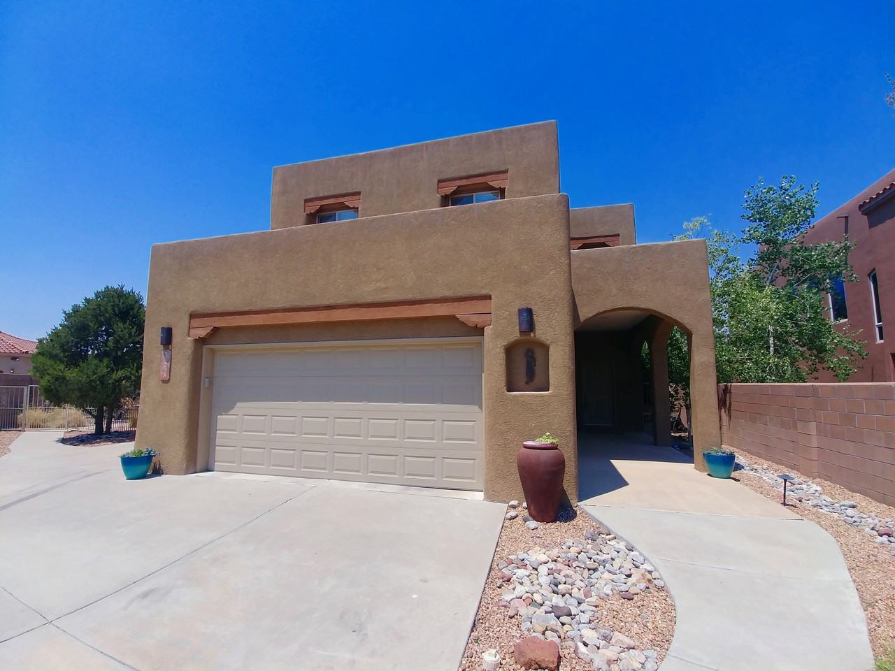 Fantastic and rare opportunity for a fully-loaded, 5 bedroom custom home in a quiet North Albuquerque Acres Cul-de-sac. Soaring ceilings downstairs open to a huge living room with gas fireplace, tons of natural light, and easy backyard access. Enjoy a large and elegant kitchen with massive granite counter slabs, tons of cabinet storage, gas range, full stainless appliance package, and large pantry. The guest suite downstairs comes with it's own private bathroom. Large office space could make a great 2nd living area or home theatre. 4 bedrooms upstairs are all spacious and accommodating. King-size master suite includes a deep soak tub, double sink vanity, tons of closet space, and a beautiful view balcony. All the right amenities are included, with two zone refrigerated air, a three car garage, separate laundry room with washer/dryer hookups, central vac system, and so much more. Out back, you'll find a peaceful haven with a private fire pit, healthy grass area, a covered patio, and beautiful top notch landscaping.