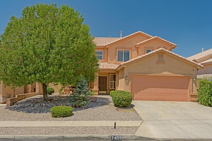 5 Bedroom home with a smart and pragmatic floor plan. 4 nice-sized bedrooms upstairs with the mast split off for optimum privacy. Downstairs features a large, open eat-in kitchen with stainless appliances, gas range, quality side by side fridge, a bar, and a great pantry. There's also an inviting great room with gorgeous natural light accents and raised ceilings. Bonus 5th bedroom, 2 car garage, and a private backyard with great patio space and a kiva fireplace. Great far NE Heights location near La Cueva High School, great parks (dog park), with quick and easy access to Paseo Del Norte, I-25, and the foothills. MOVE IN INCENTIVE - 1/2 Off the First Month's Rent!!